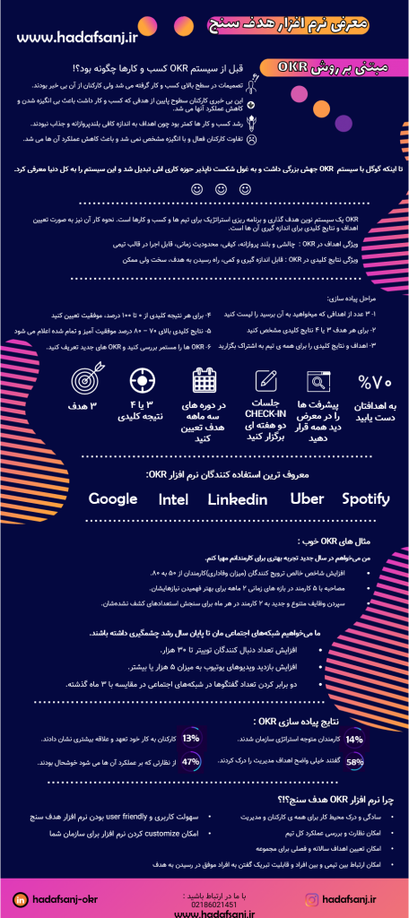 در این نوشته قصد داریم آموزش هایی جامع در باره OKR را در قالب اینفوگرافیک های ساده و گیرا بیان کنیم. امید است این آموزش ها راهنمای راه علاقمندان حوزه OKR شود.